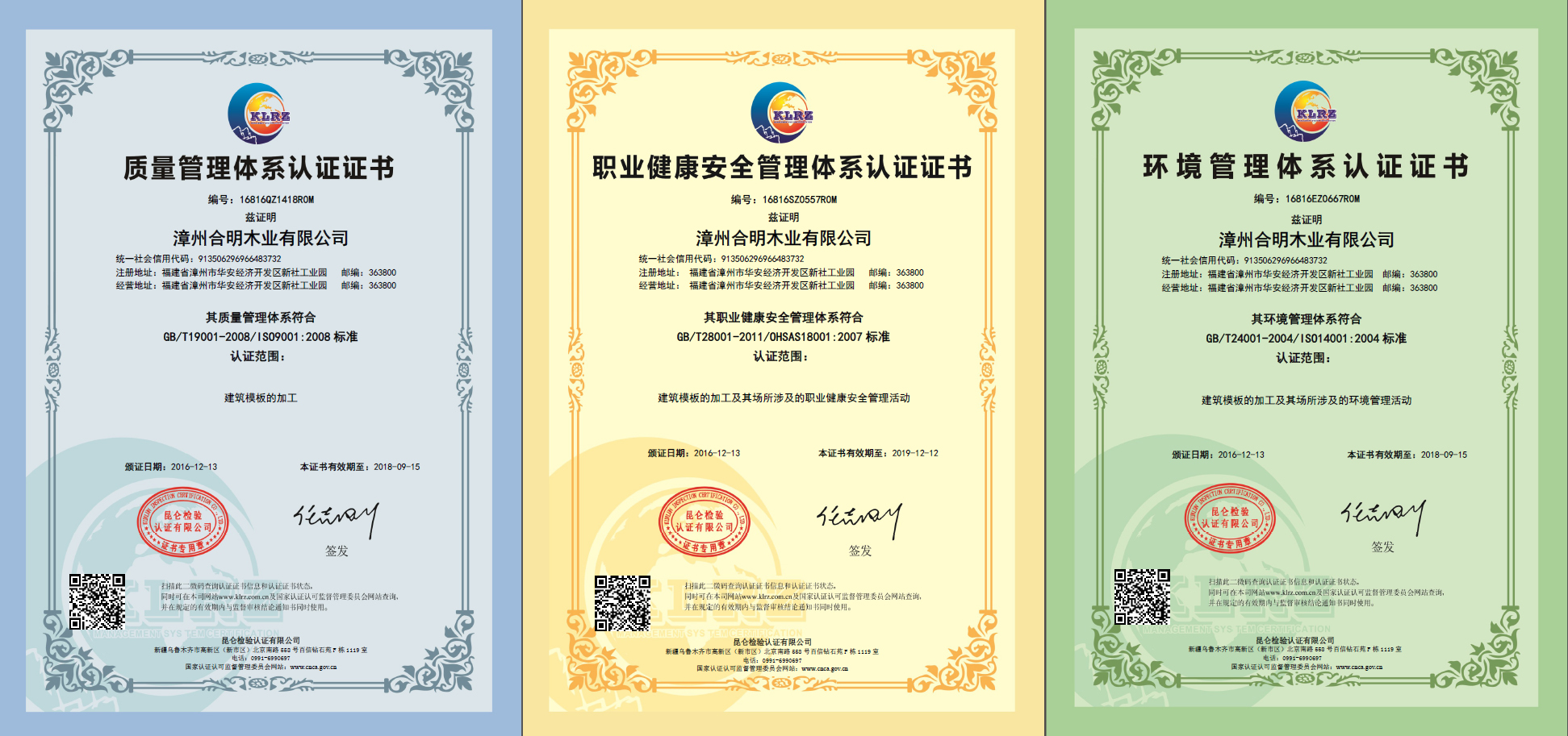 好消息!2016年12月,合明模板通過3大國際管理體系認證!該認證考核涉及到企業(yè)管理,產(chǎn)品生產(chǎn)、團隊服務(wù)、環(huán)境衛(wèi)生、安全健康等各方面,合明模板經(jīng)過近一年的綜合考評,順利通過測評,得到了國際化標準認證三大權(quán)威證書。