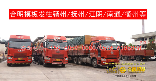 今日合明模板出貨至:江西贛州龍南、撫州南豐、靖安;江蘇江陰、江蘇南通;浙江余姚、杭州、衢州;福建福州、平潭、福鼎、廈門同安、泉州惠安,三明,莆田等地,共計32車。