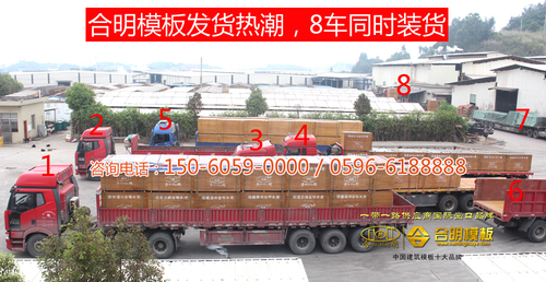 合明模板發貨30車加4貨柜,分別發往永康、老余杭、蕭山、惠來、撫州崇仁、富陽、連江、閩侯、廈門、臺州臨海、嘉興、深圳、上海、奉賢、青島、安徽、麗水、天臺、孝感、贛州、同安、柯橋、沙縣、漳州、安溪、南安,4個貨柜發往非洲地區。覆膜板、酚醛板銷量領先,各占40%左右。