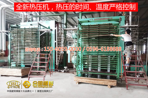 合明熱壓機是全國領先新型熱壓機,可根據不同種類模板進行各種高溫熱壓,熱壓時間超長,一般覆膜板130度以上熱壓,高脂覆膜板150度超高溫熱壓,熱壓好的模板最多可周轉38次。