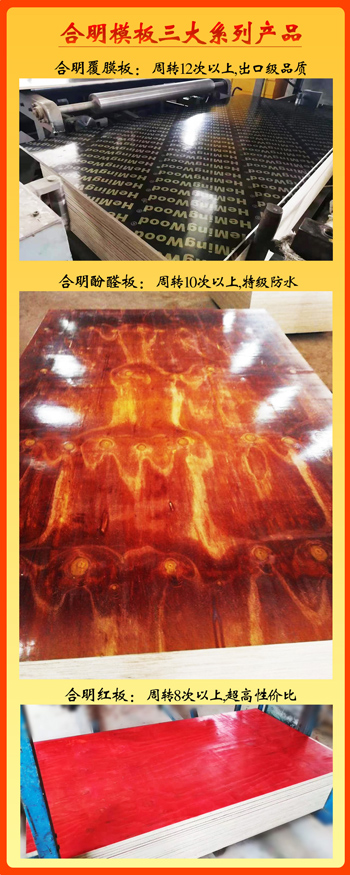 目前合明覆膜板可周轉12次以上,合明酚醛板可周轉10次以上,合明紅板可周轉8次以上。