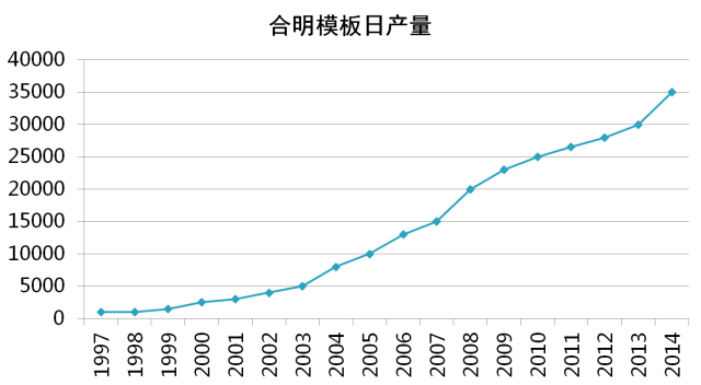 合明模板開始出口馬來西亞等東南亞一帶,合明模板日產(chǎn)量達(dá)25000張。