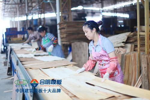 合明桉木建筑模板制作經過近20道細致工藝制作而成,制作過程講究,芯板600g/層、面板500g/層滾足量的膠水,排板整齊無縫隙,130度超高溫壓制,1400秒超長時間壓制,精密裁板,細致檢驗成品,完好包裝,每一張出廠的合明桉木建筑模板都是精品。