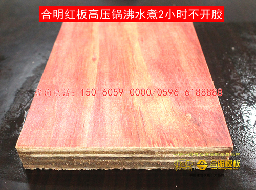 合明紅板每一張均要進行翻板檢驗,挑出不合格的板,把板面膠水未滾均勻的涂均勻,不合格的產品不出廠。合明紅板每天均要抽取邊角料進行高壓鍋沸水煮2小時,挑出不合格的產品。