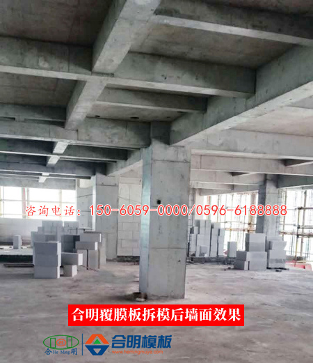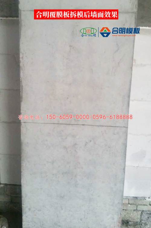 合明覆膜板表層膜厚實(shí)牢固,脫模不會(huì)對(duì)建筑物造成污染,且可以限制有害氣體的釋放量。覆膜板脫模后墻體平整光滑,可免于二次抹灰,大大縮短工期。