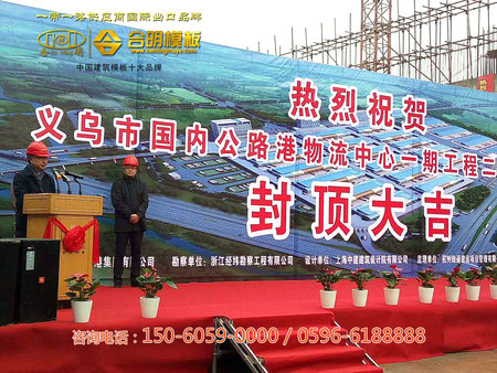 近日,浙江省義烏市國內公路港物流中心一期工程封頂!合明建筑模板作為本項目指定使用建筑材料,與浙江環宇建設和中天建設兩家承建集團,共同見證了該工程的圓滿落成!